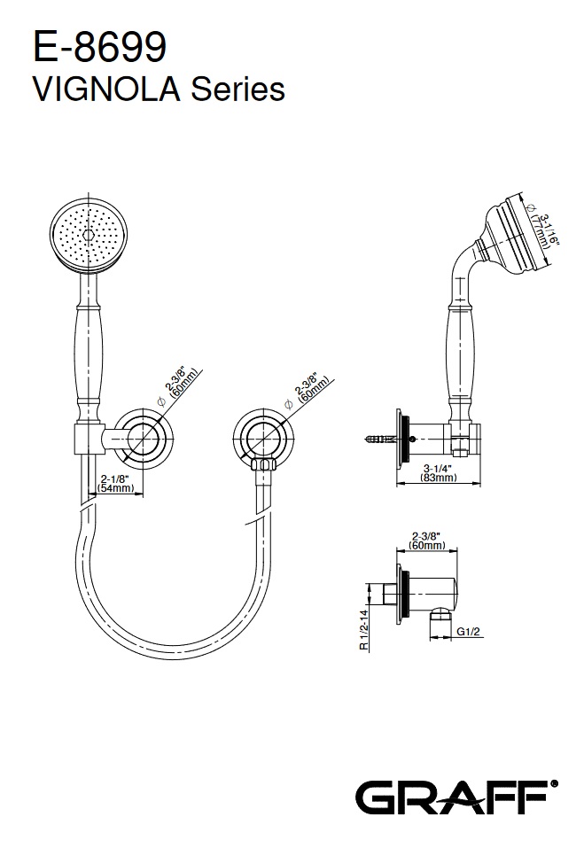 Graff Vignola Bateria natryskowa z zestawem prysznicowym i deszczownicą Ø 228 mm Chrom VIG01
