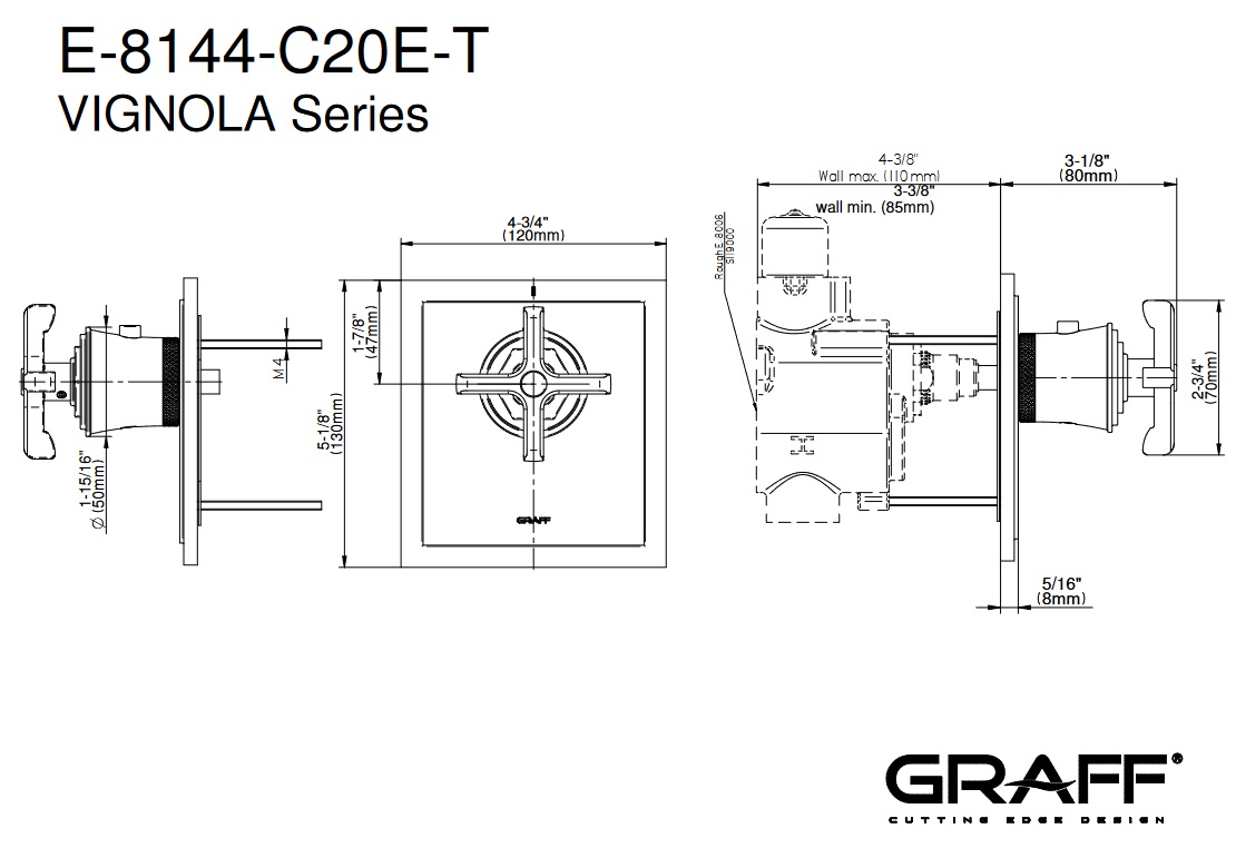 Graff Vignola Zawór termostatyczny podtynkowy - element zewnętrzny Chrom E-8144-C20E-T