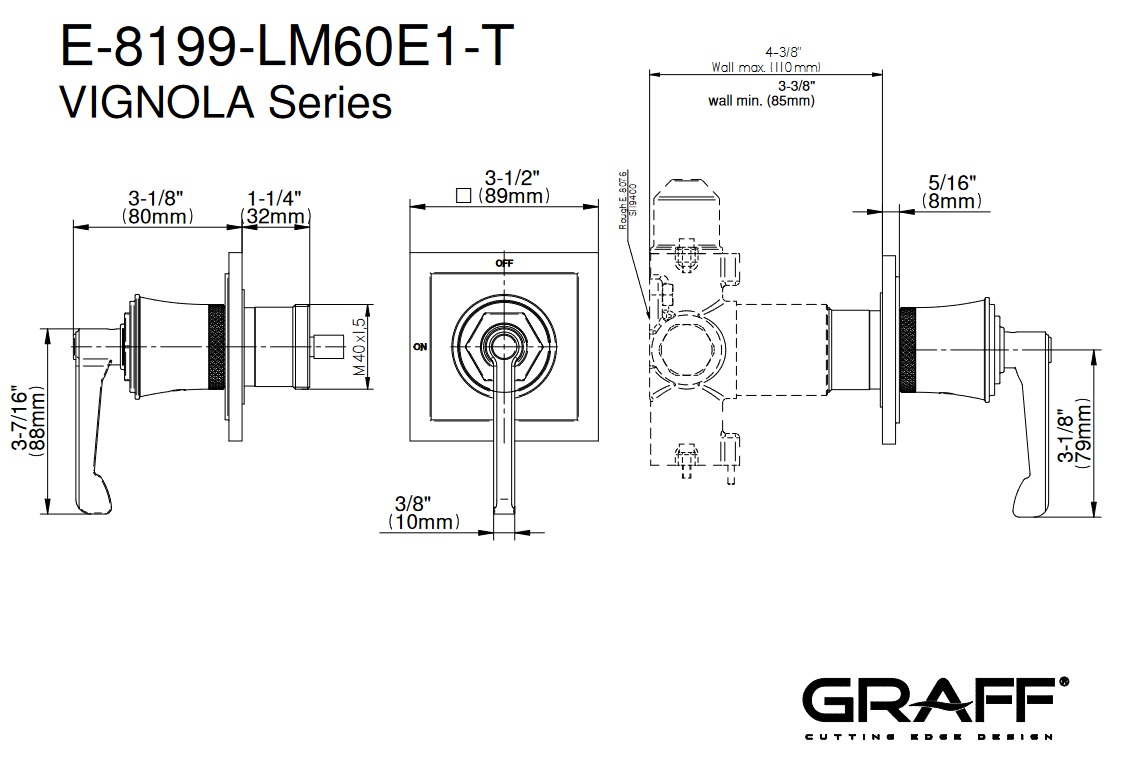 Graff Vignola Zawór odcinający podtynkowy - element zewnętrzny Chrom E-8199-LM60E1-T