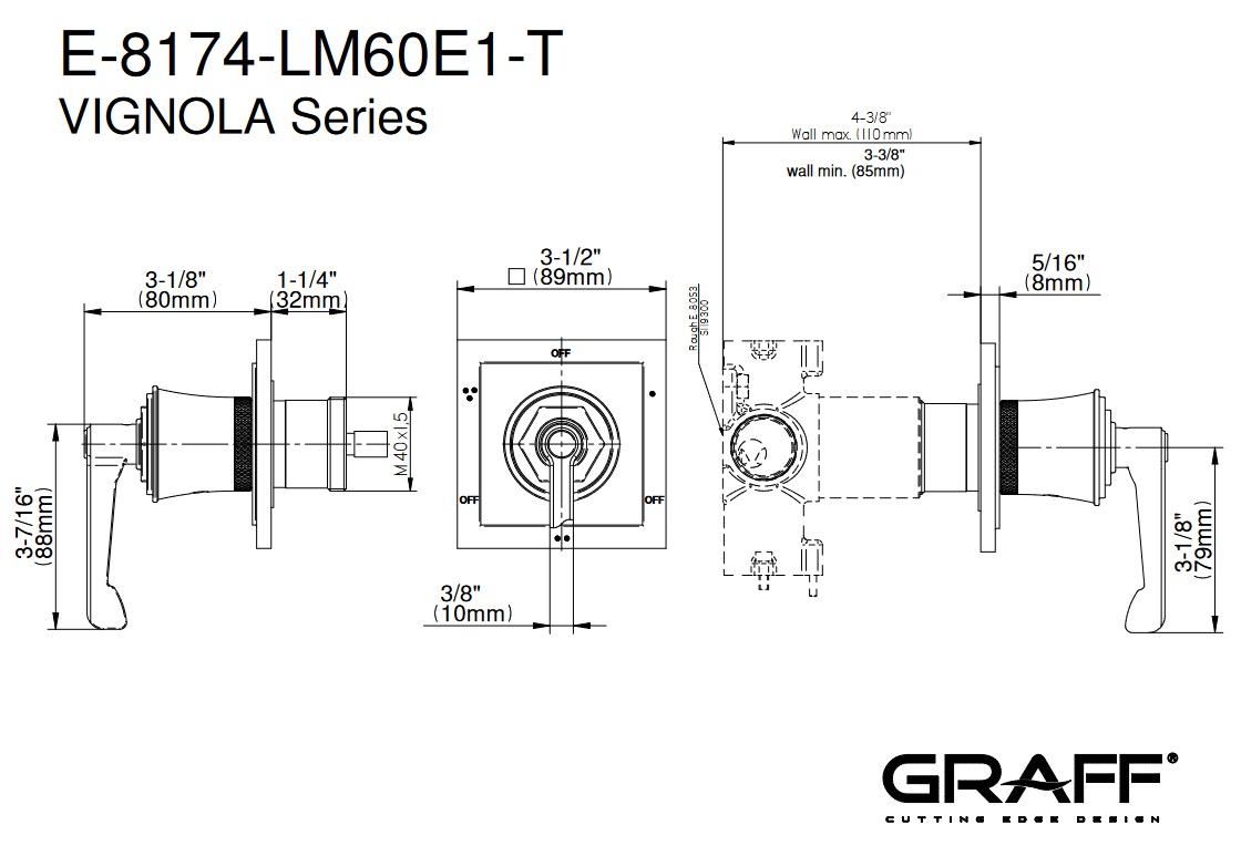Graff Vignola Bateria natryskowa 3-drożna podtynkowa - element zewnętrzny Chrom E-8174-LM60E1-T