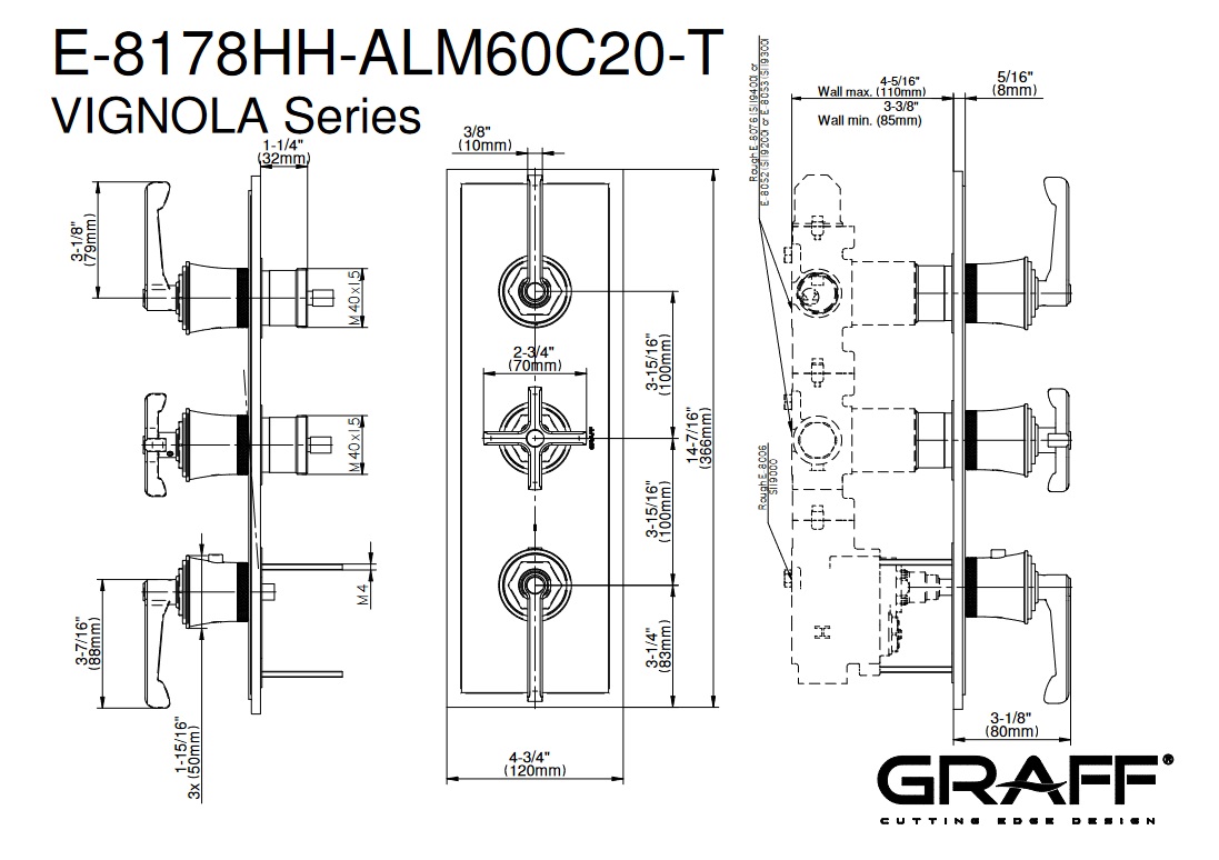 Graff Vignola Bateria natryskowa podtynkowa - element zewnętrzny Chrom E-8178HH-ALM60C20-T