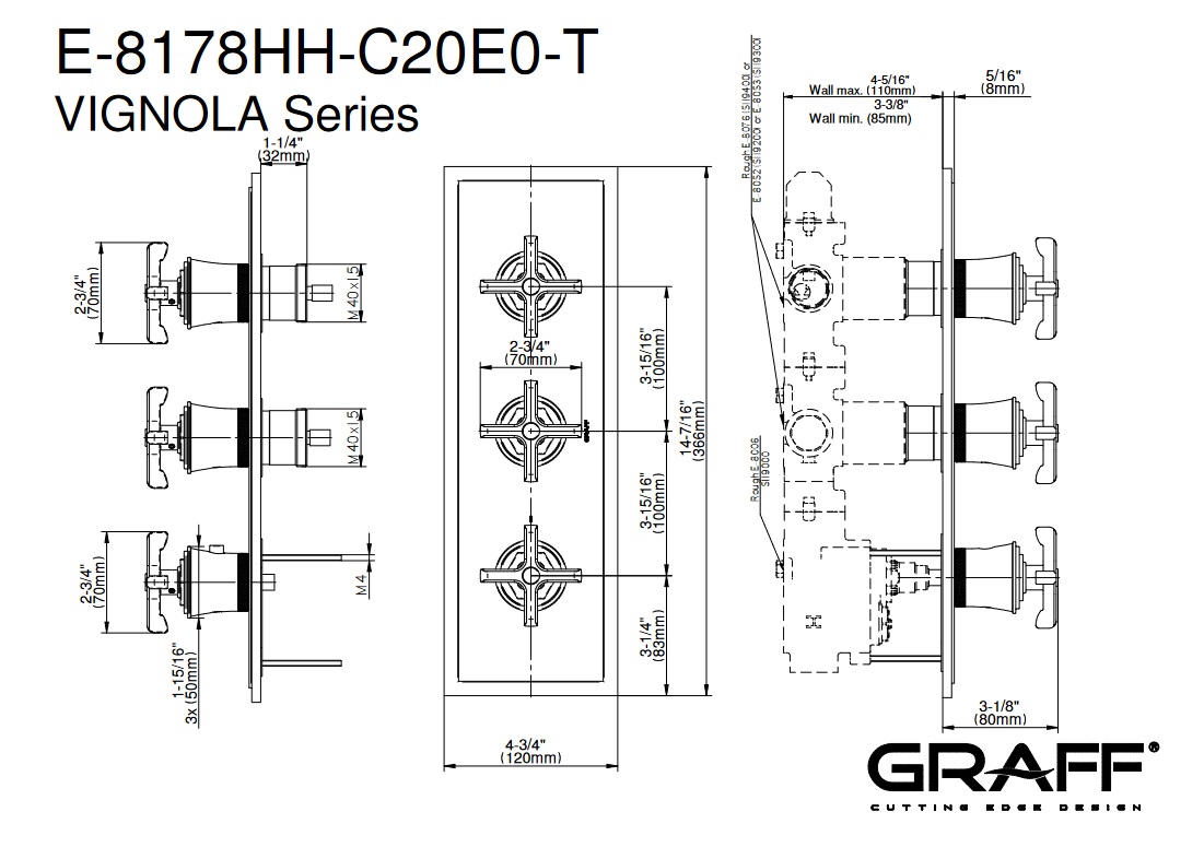 Graff Vignola Bateria natryskowa podtynkowa - element zewnętrzny Chrom E-8178HH-C20E0-T