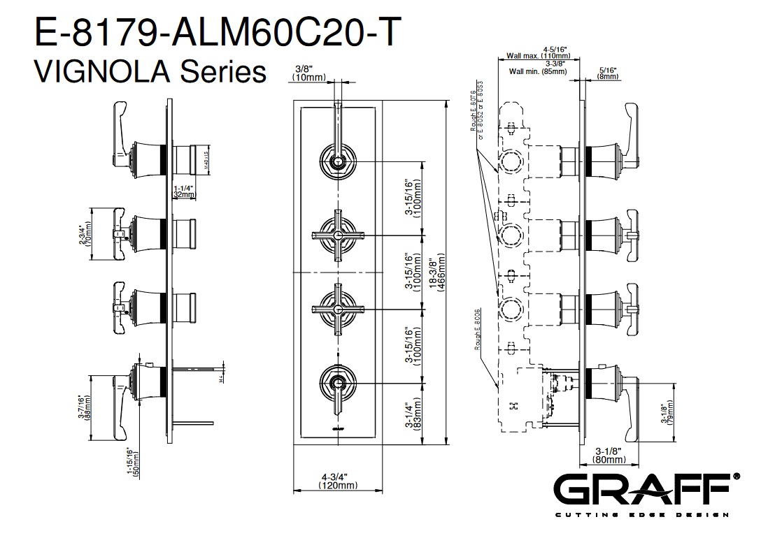 Graff Vignola Bateria natryskowa podtynkowa 4-uchwytowa - element zewnętrzny Chrom E-8179-ALM60C20-T