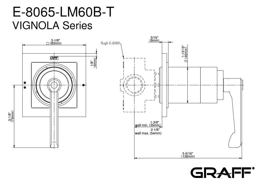 Graff Vignola Bateria natryskowa podtynkowa jednouchwytowa - element zewnętrzny Chrom E-8065-LM60S-T