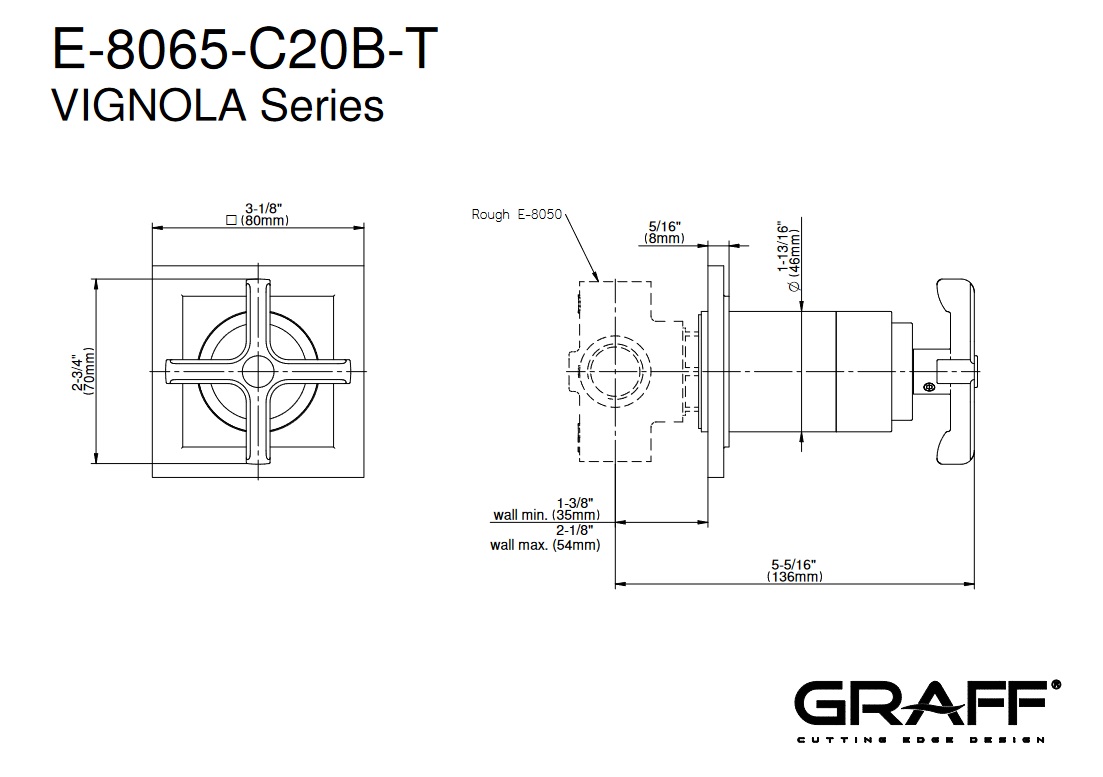 Graff Vignola Bateria natryskowa podtynkowa jednouchwytowa - element zewnętrzny Chrom E-8065-C20B-T