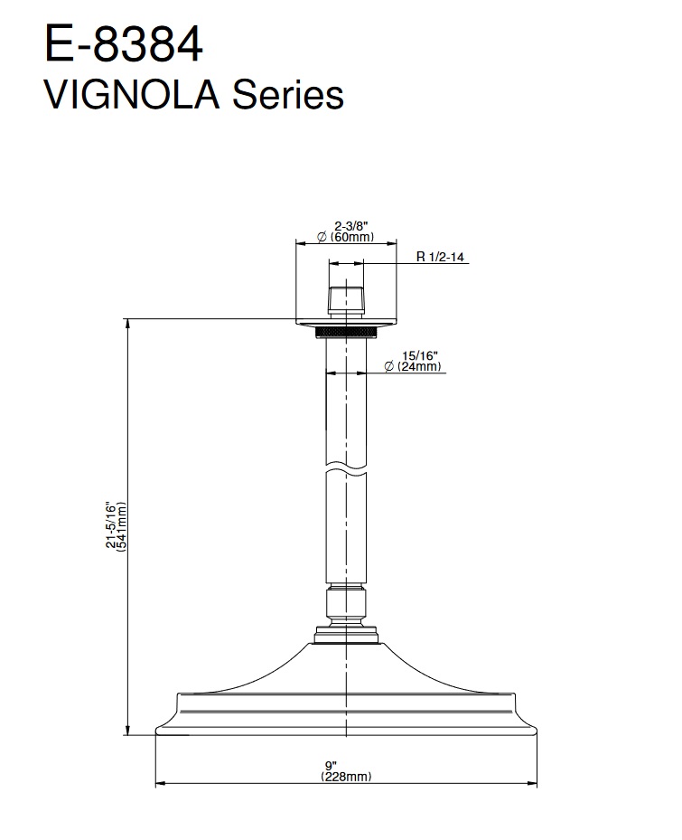 Graff Vignola Deszczownic Ø 228 mm z ramieniem sufitowym Chrom E-8384