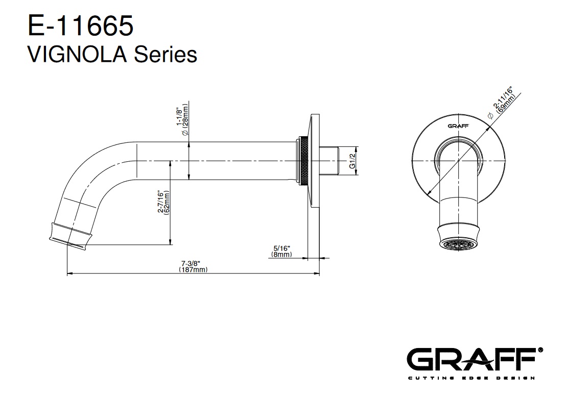 Graff Vignola Wylewka wannowa ścienna 187 mm Chrom E-11665