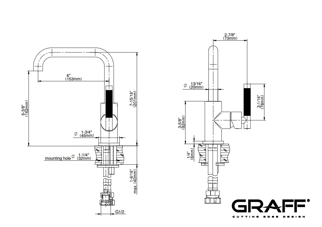 Graff Harley Bateria umywalkowa Chrom E-11401-LM57L