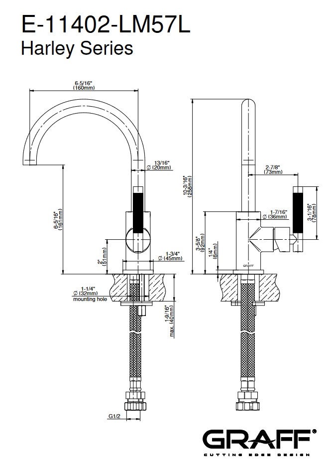 Graff Harley Bateria umywalkowa Chrom E-11402-LM57L