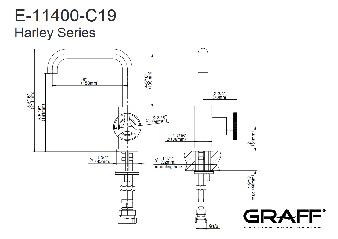Graff Harley Bateria umywalkowa PROGRESSIVE Chrom E-11400-C19