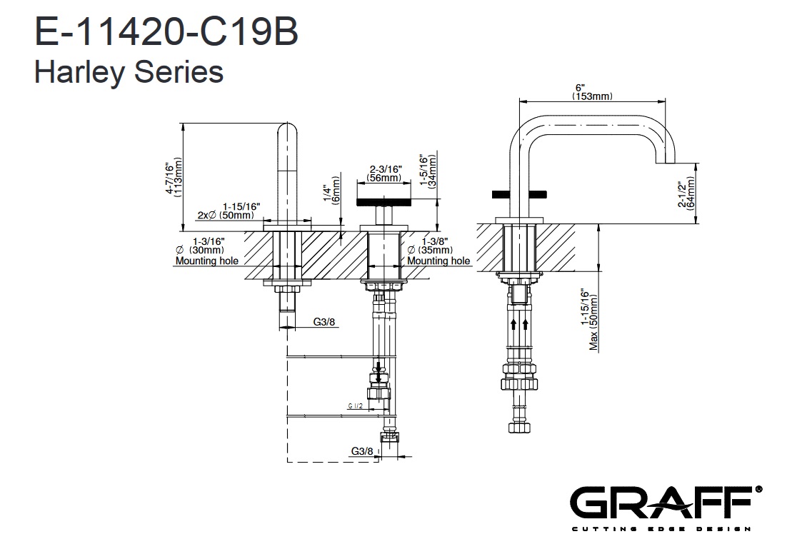 Graff Harley Bateria umywalkowa 2-otworowa Chrom E-11420-C19B