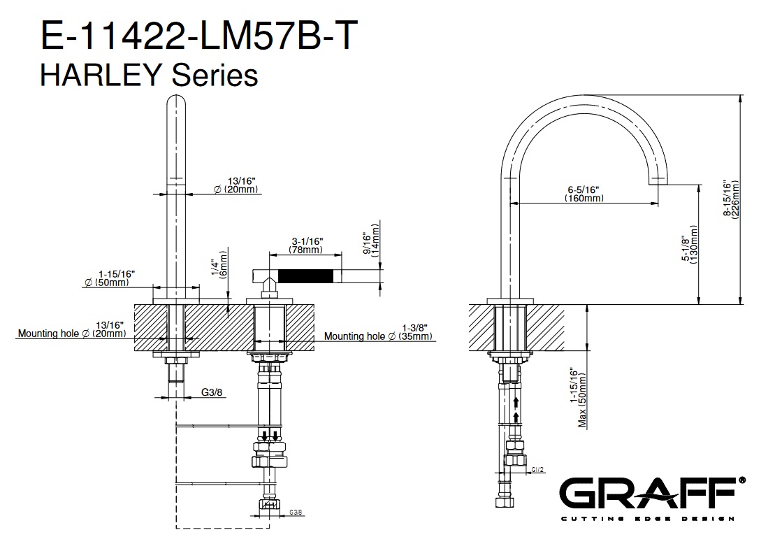 Graff Harley Bateria umywalkowa 2-otworowa Chrom E-11422-LM57B
