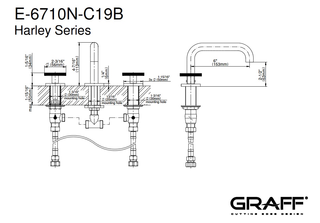 Graff Harley Bateria umywalkowa 3-otworowa Chrom E-6710N-C19B