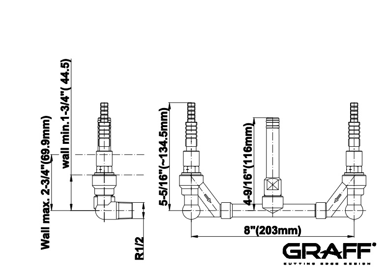 Graff Harley Element podtynkowy baterii umywalkowej 3-otworowej Chrom E-1010
