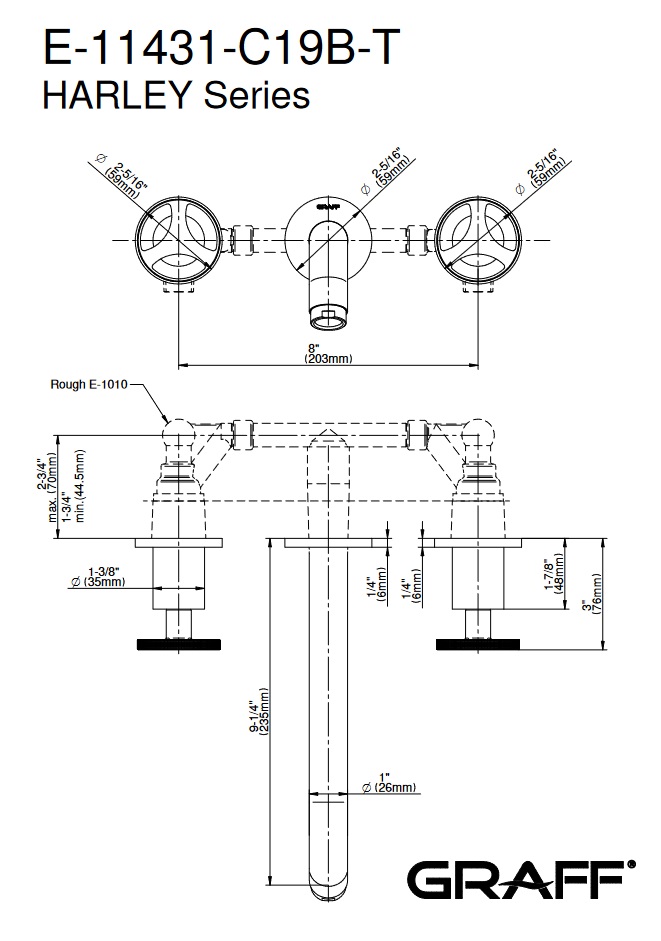 Graff Harley Bateria umywalkowa 3-otworowa podtynkowa - element zewnętrzny Chrom E-11431-C19B-T