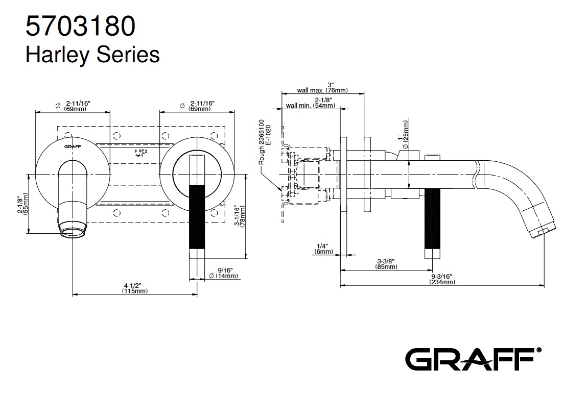 Graff Harley Bateria umywalkowa 2-otworowa podtynkowa - element zewnętrzny Chrom E-6136-LM57W-T