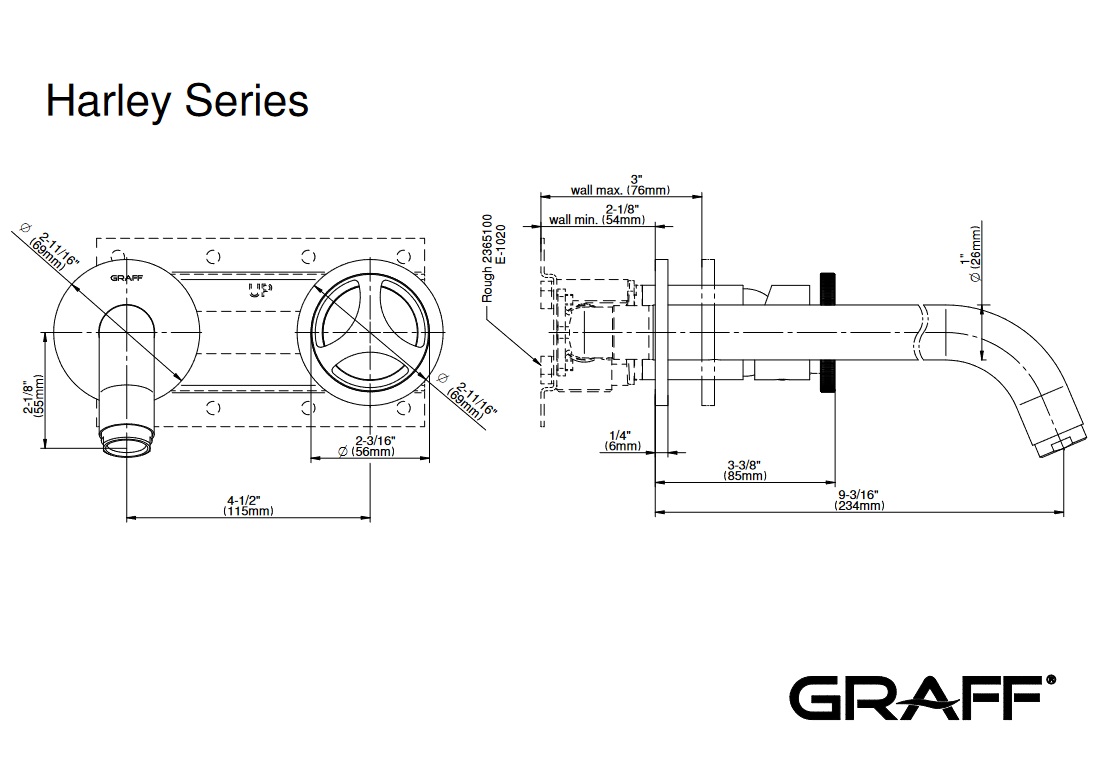 Graff Harley Bateria umywalkowa 2-otworowa podtynkowa - element zewnętrzny Chrom E-6136-C19W-T
