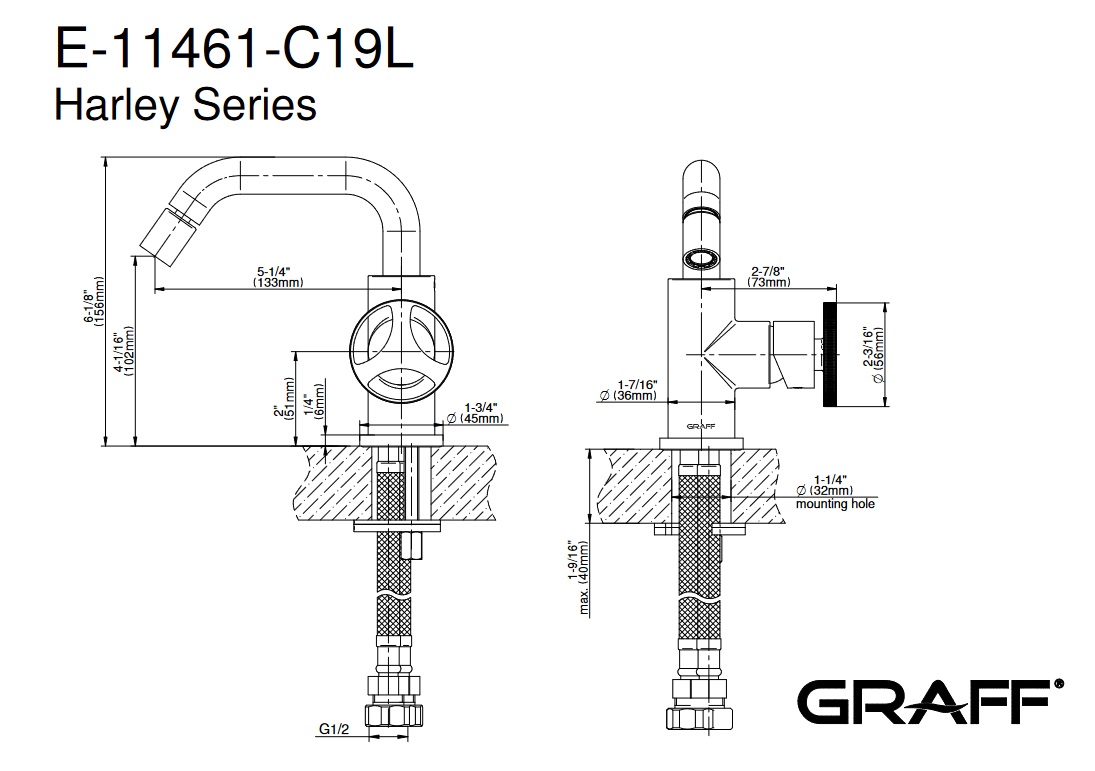 Graff Harley Bateria bidetowa jednootworowa Chrom E-11461-C19L