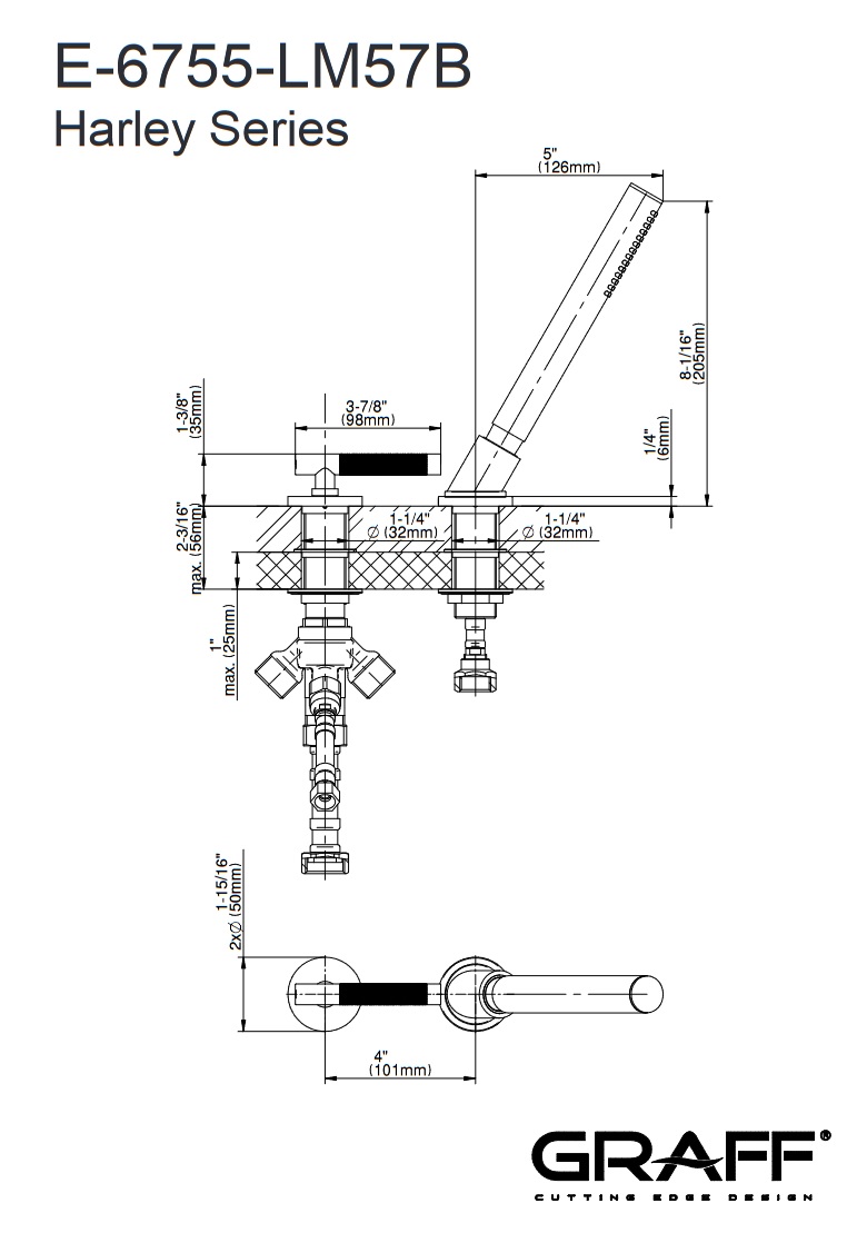 Graff Harley Zestaw prysznicowy nablatowy z przełącznikiem Chrom E-6156-LM57B