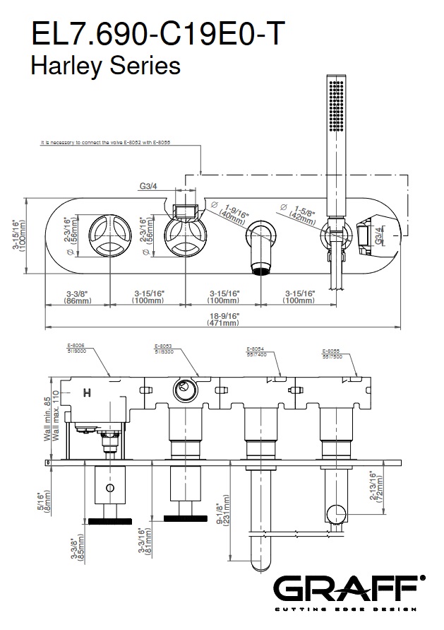 Graff Harley Bateria termostatyczna wannowo-natryskowa podtynkowa z zestawem natryskowym - element zewnętrzny Chrom EL7.690H-C19E0-T