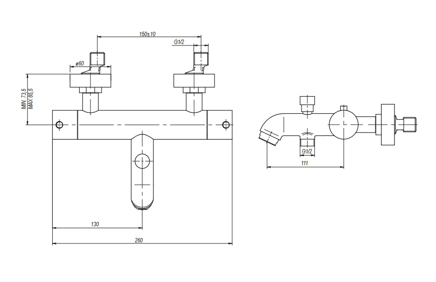 Graff Harley Bateria wannowo-natryskowa termostatyczna ścienna bez zestawu natryskowego Chrom EX-6185-C19T