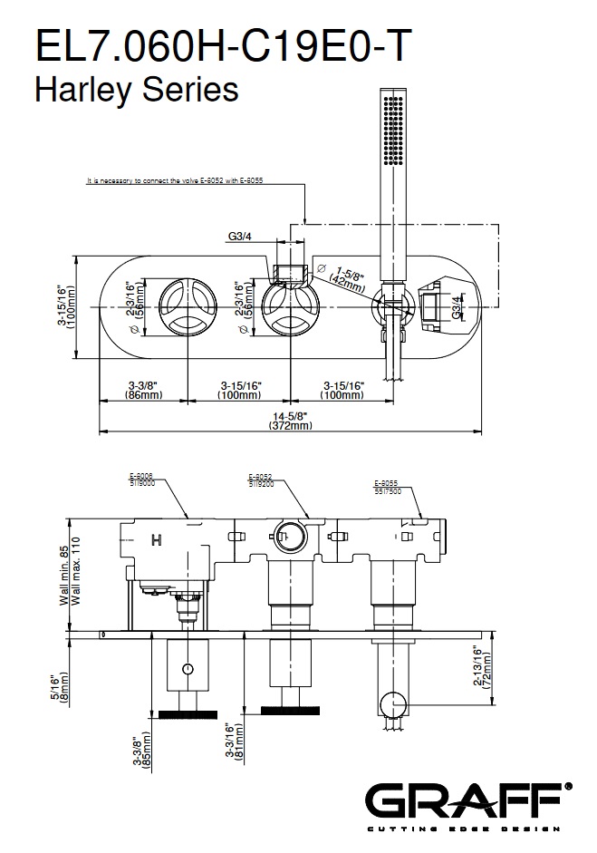 Graff Harley Bateria termostatyczna natryskowa podtynkowa z zestawem natryskowym - element zewnętrzny Chrom EL7.090H-C19E0-T