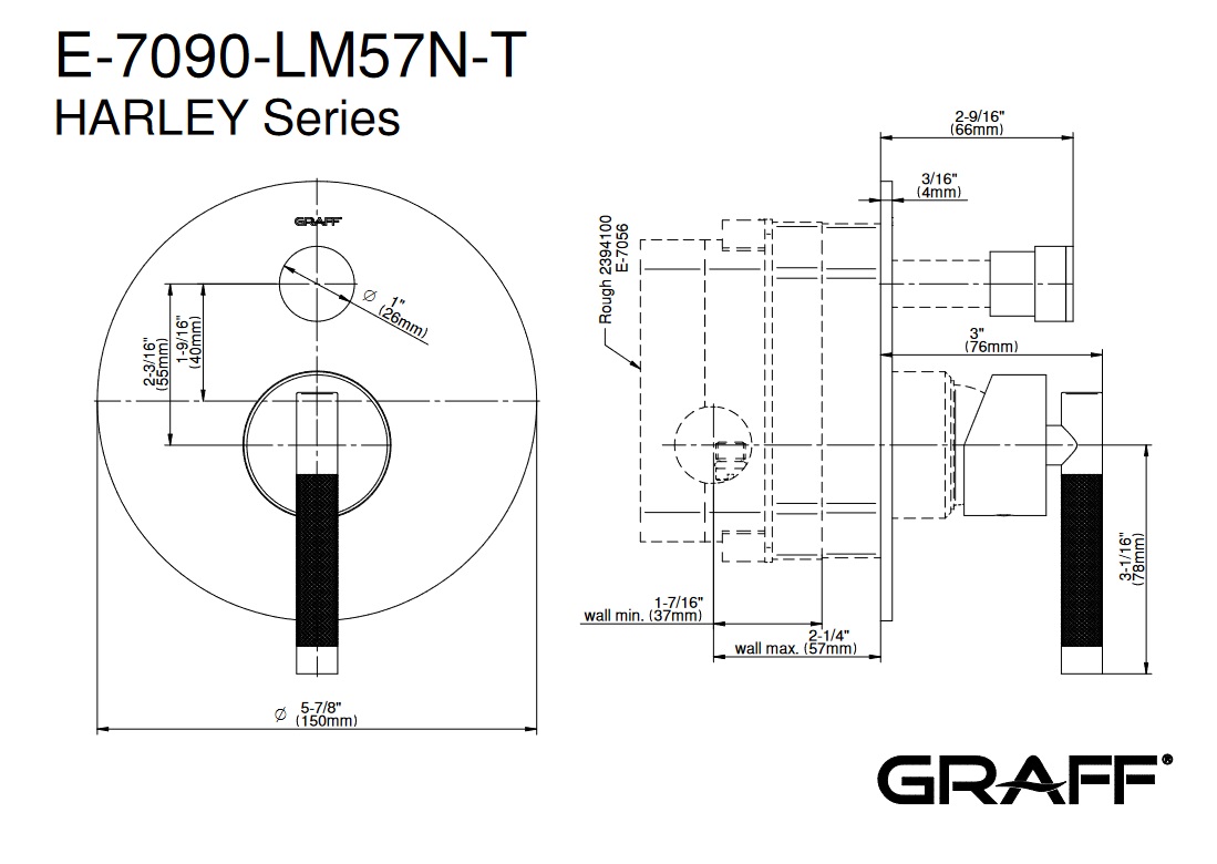 Graff Harley Bateria natryskowa podtynkowa - element zewnętrzny Chrom E-7080-LM57N-T