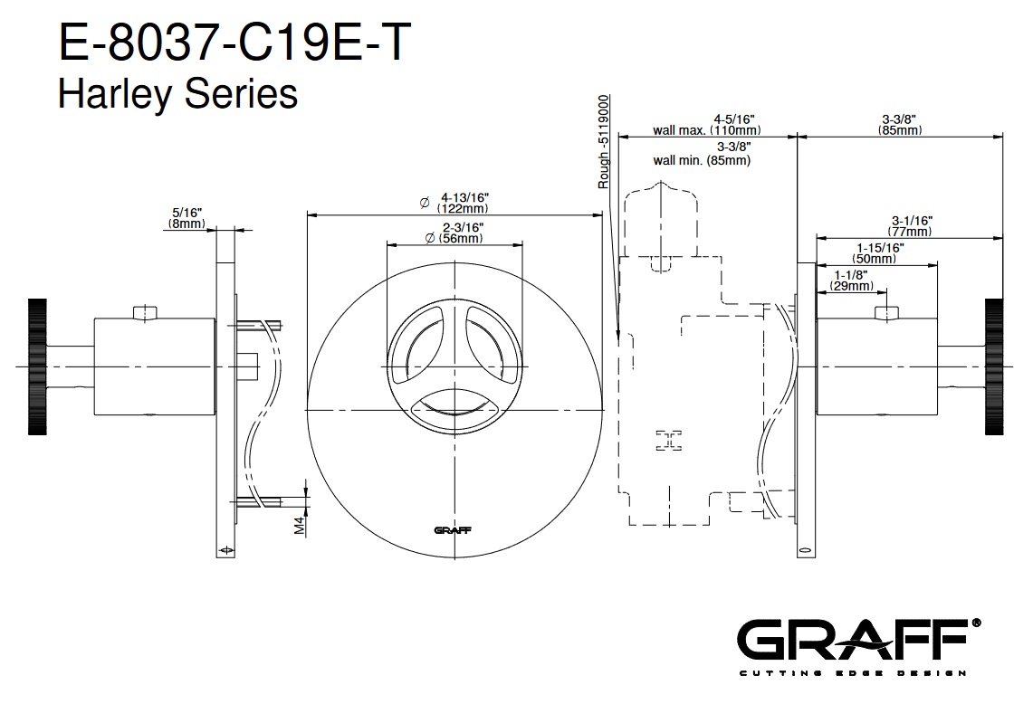 Graff Harley Zawór termostatyczny podtynkowy - element zewnętrzny Chrom E-8037-C19E-T