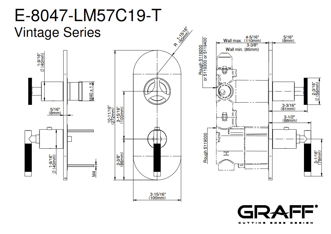 Graff Harley Bateria natryskowa podtynkowa 2-uchwytowa - element zewnętrzny Chrom E-8047-LM57C19-T