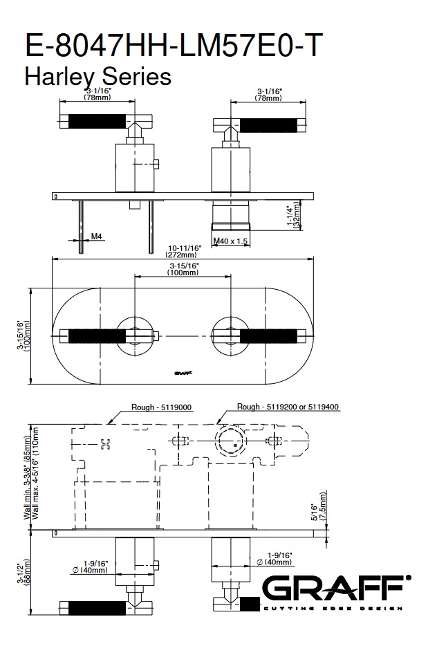 Graff Harley Bateria natryskowa podtynkowa 2-uchwytowa - element zewnętrzny Chrom E-8047HH-LM57E0-T