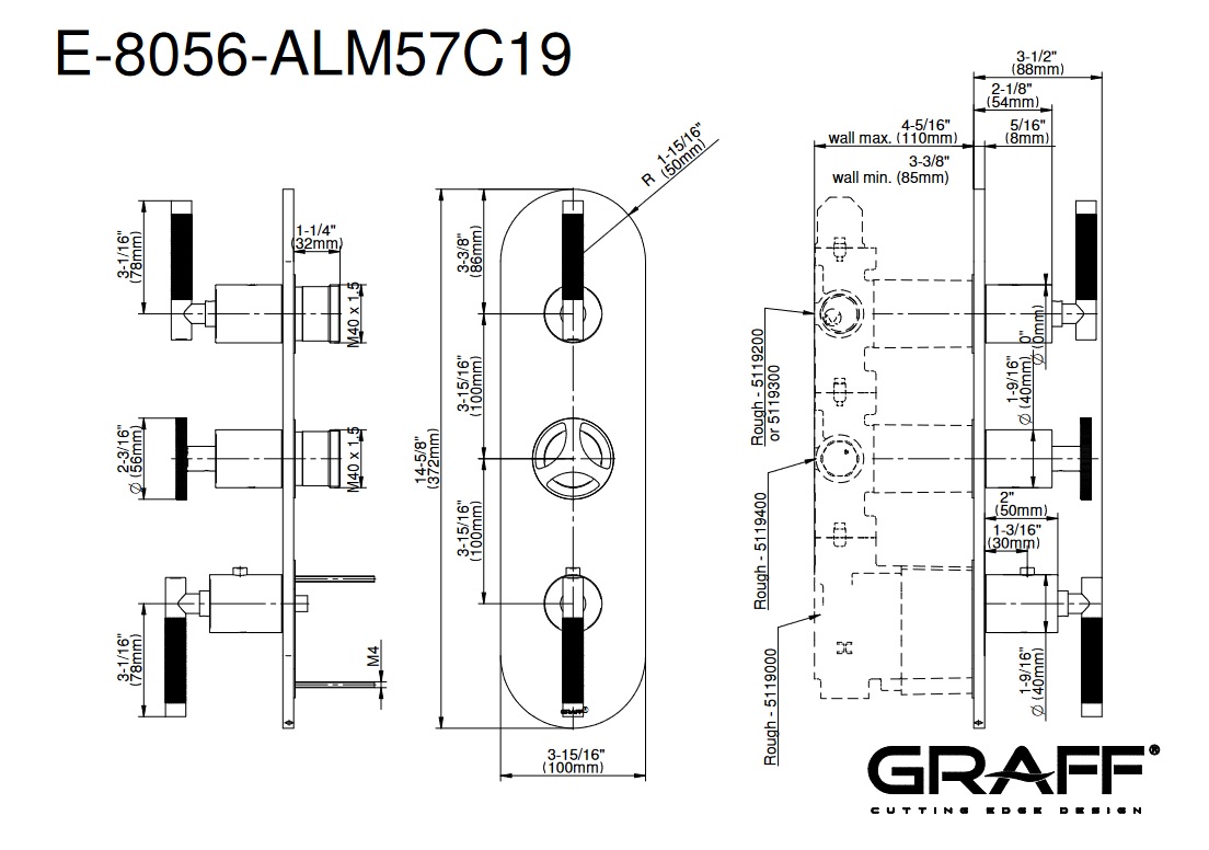 Graff Harley Bateria natryskowa podtynkowa 3-uchwytowa - element zewnętrzny Chrom E-8056-ALM57C19-T
