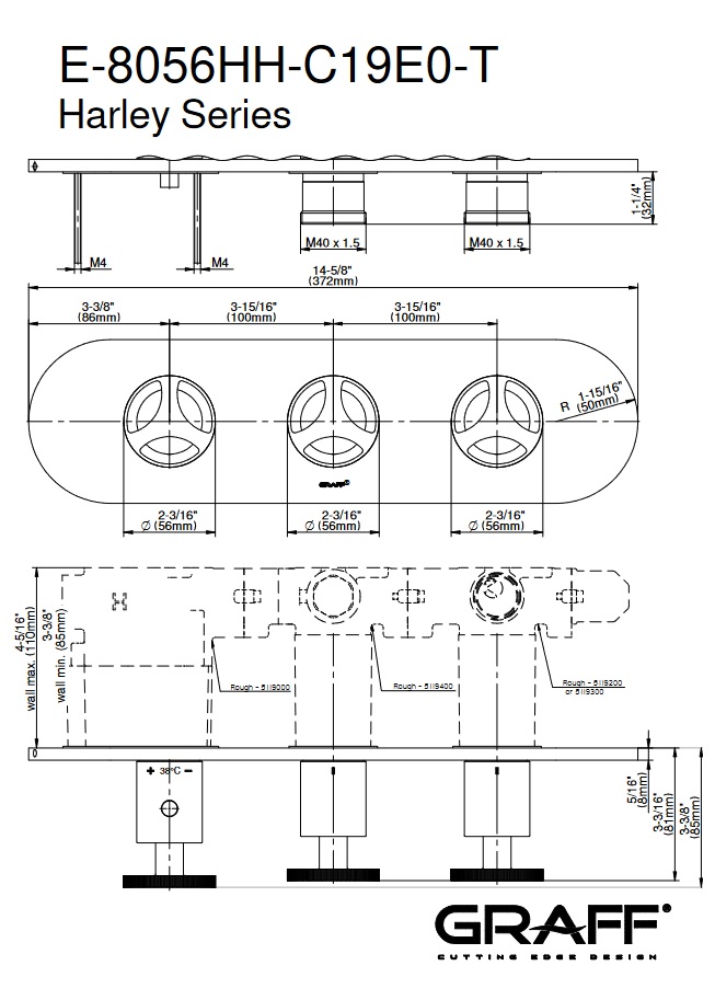 Graff Harley Bateria natryskowa podtynkowa 3-uchwytowa - element zewnętrzny Chrom E-8056HH-C19E0-T