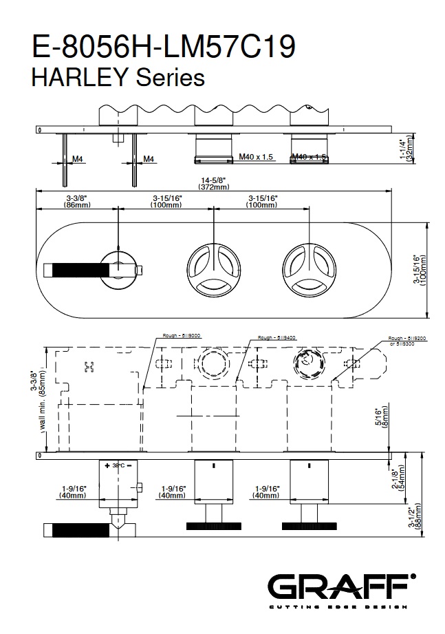 Graff Harley Bateria natryskowa podtynkowa 3-uchwytowa - element zewnętrzny Chrom E-8056HH-LM57C19-T