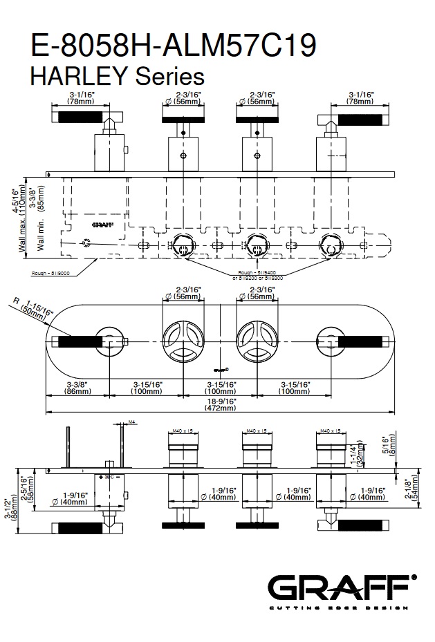 Graff Harley Bateria natryskowa podtynkowa 4-uchwytowa - element zewnętrzny Chrom E-8058HH-ALM57C19-T