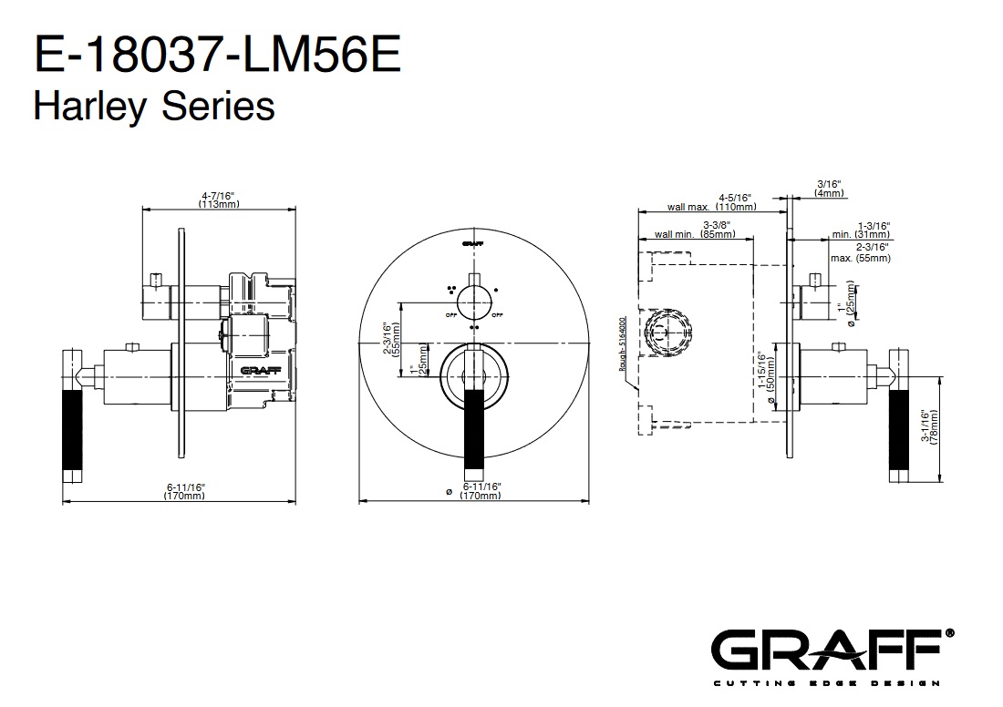 Graff Harley Zawór termostatyczny 3-drożny - element zewnętrzny Chrom E-18037-LM57E-T