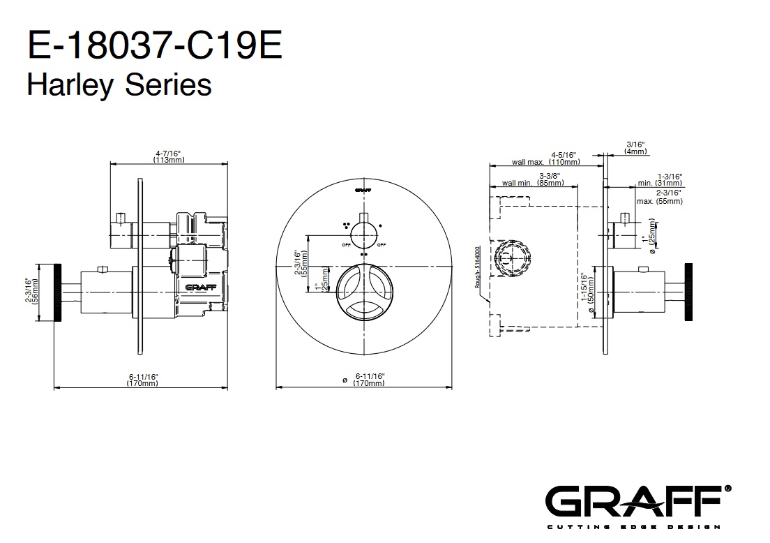 Graff Harley Zawór termostatyczny 3-drożny - element zewnętrzny Chrom E-18037-C19E-T