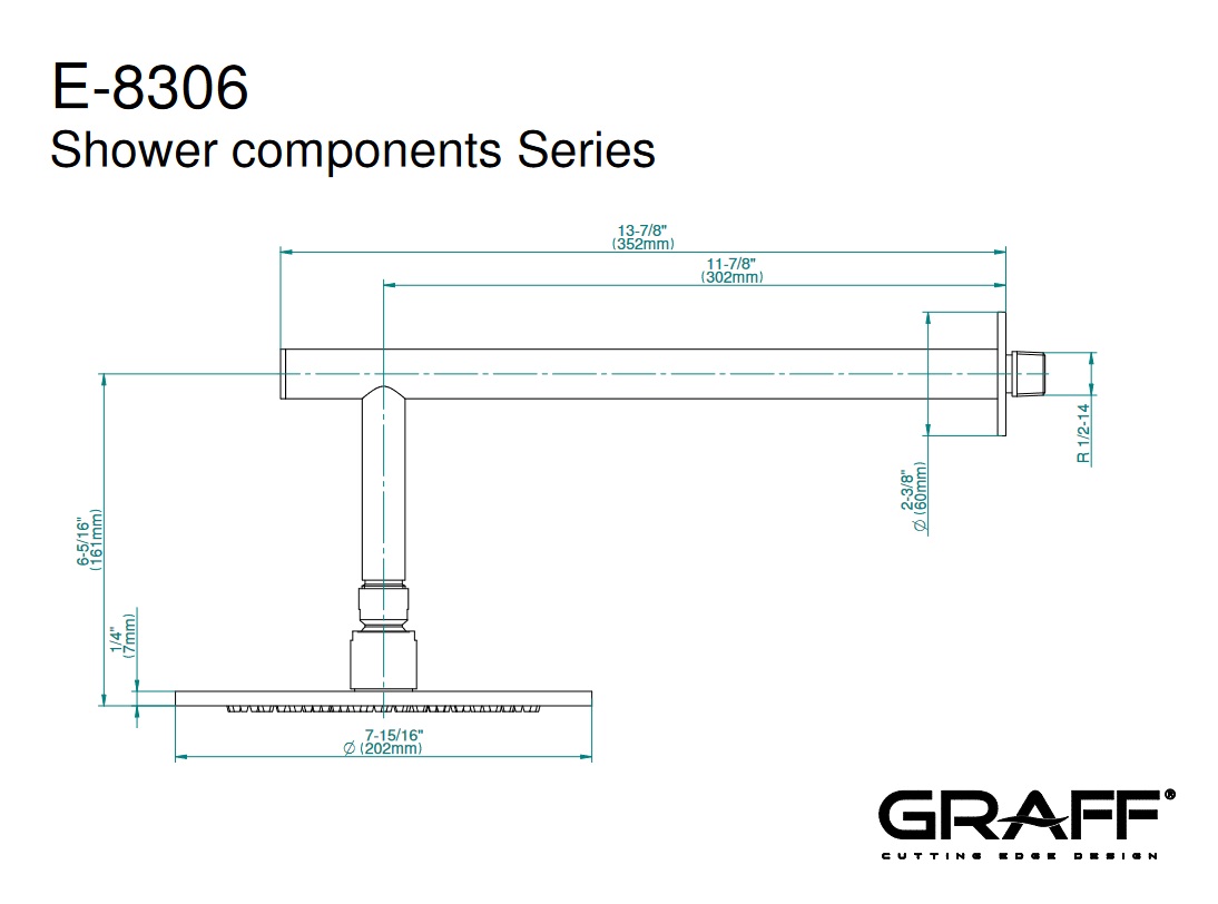 Graff Harley Deszczownica Ø 202 mm na ramieniu ściennym Chrom E-8306