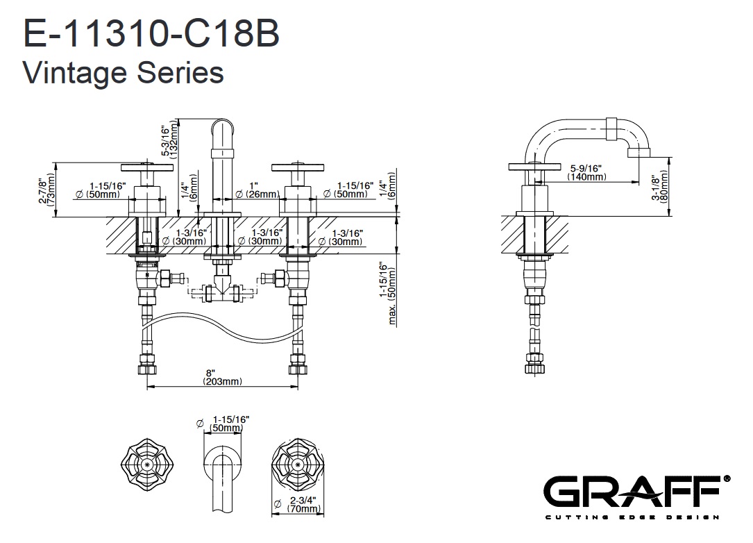 Graff Vintage Bateria umywalkowa 3-otworowa Chrom E-11310-C18B