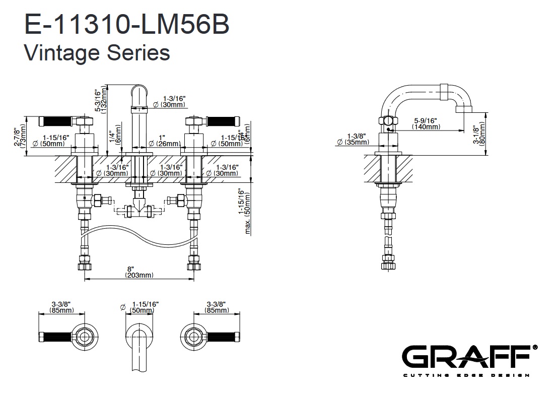 Graff Vintage Bateria umywalkowa 3-otworowa Chrom E-11310-LM56B