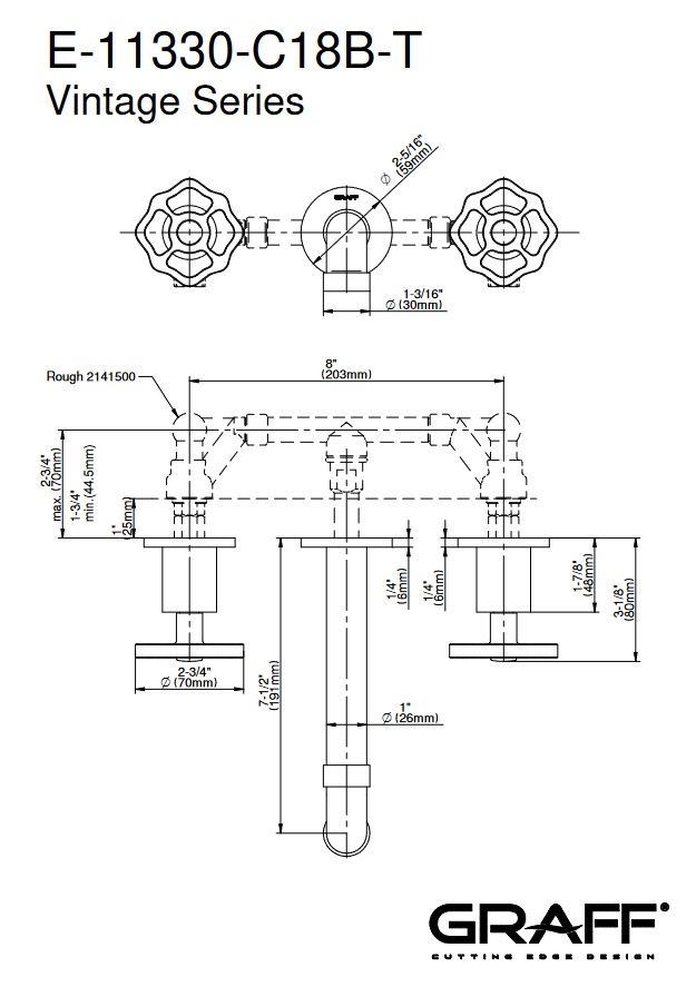Graff Vintage Bateria umywalkowa 3-otworowa 191 mm podtynkowa - element zewnętrzny Chrom E-11330-LM56B-T