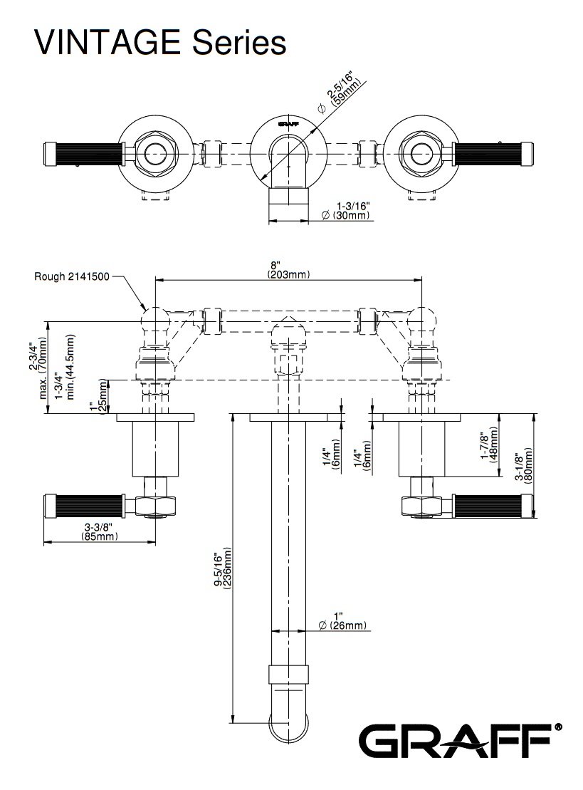 Graff Vintage Bateria umywalkowa 3-otworowa 234 mm podtynkowa - element zewnętrzny Chrom E-11331-LM56B-T