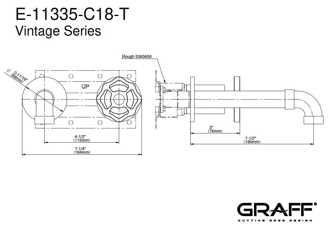 Graff Vintage Bateria umywalkowa 2-otworowa 190 mm podtynkowa - element zewnętrzny Chrom E-11335-C18B-T