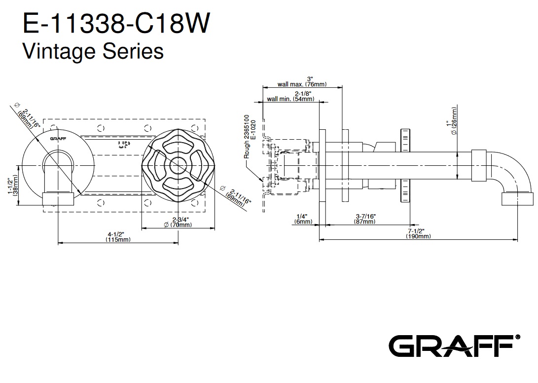 Graff Vintage Bateria umywalkowa 2-otworowa 190 mm podtynkowa - element zewnętrzny Chrom E-11338-C18W-T