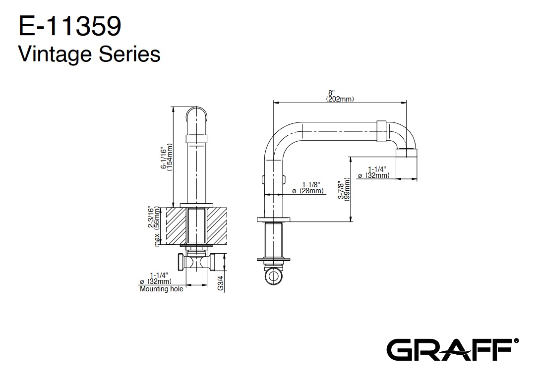 Graff Vintage Wylewka wannowa 202 mm Chrom E-11359-T