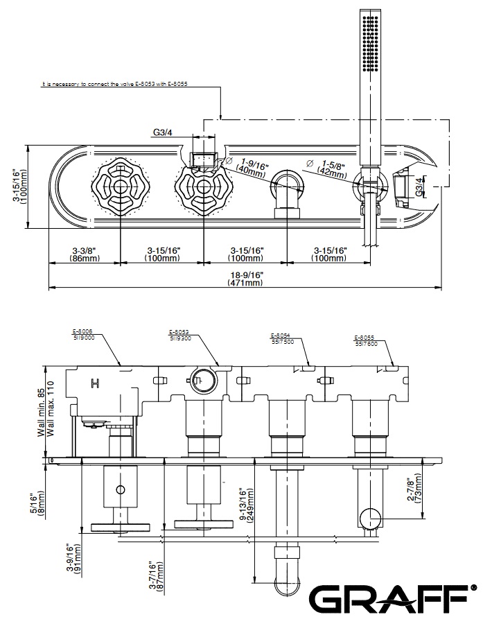 Graff Vintage Bateria wannowo-natryskowa podtynkowa z zestawem prysznicowym - element zewnętrzny Chrom ET7.690H-C18E0-T