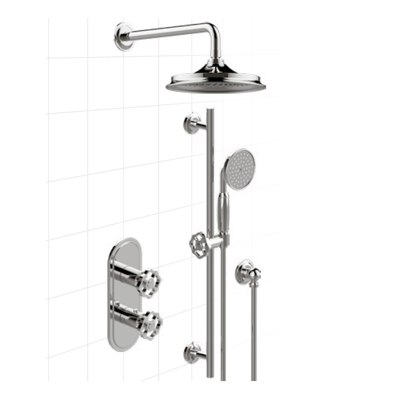 Graff Vintage Bateria natryskowa z zestawem prysznicowym na drążku z termostatem i deszczownicą Ø 228 mm Chrom VIN04