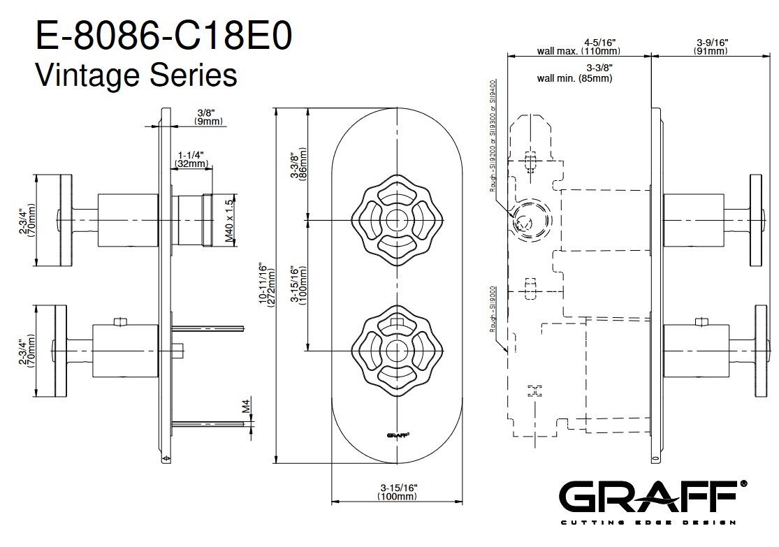 Graff Vintage Bateria natryskowa podtynkowa 2-uchwytowa Chrom E-8086-C18E0-T