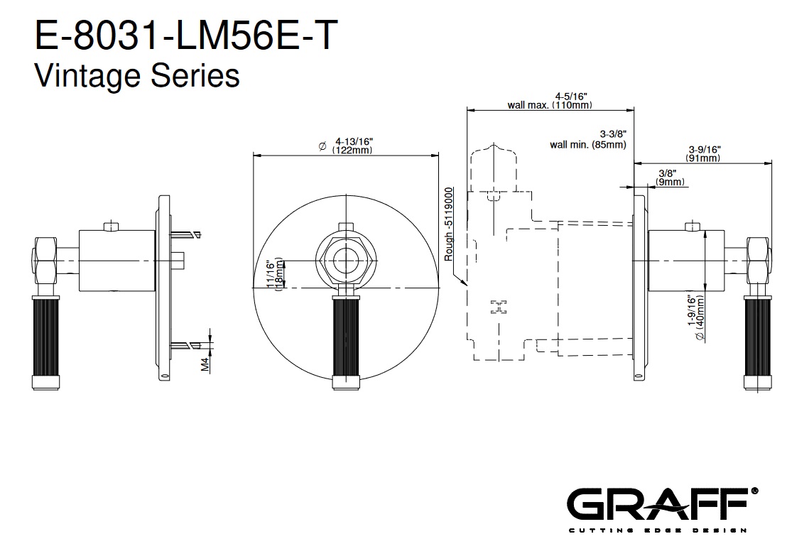 Graff Vintage Zawór termostatyczny podtynkowy - element zewnętrzny Chrom E-8031-LM56E-T