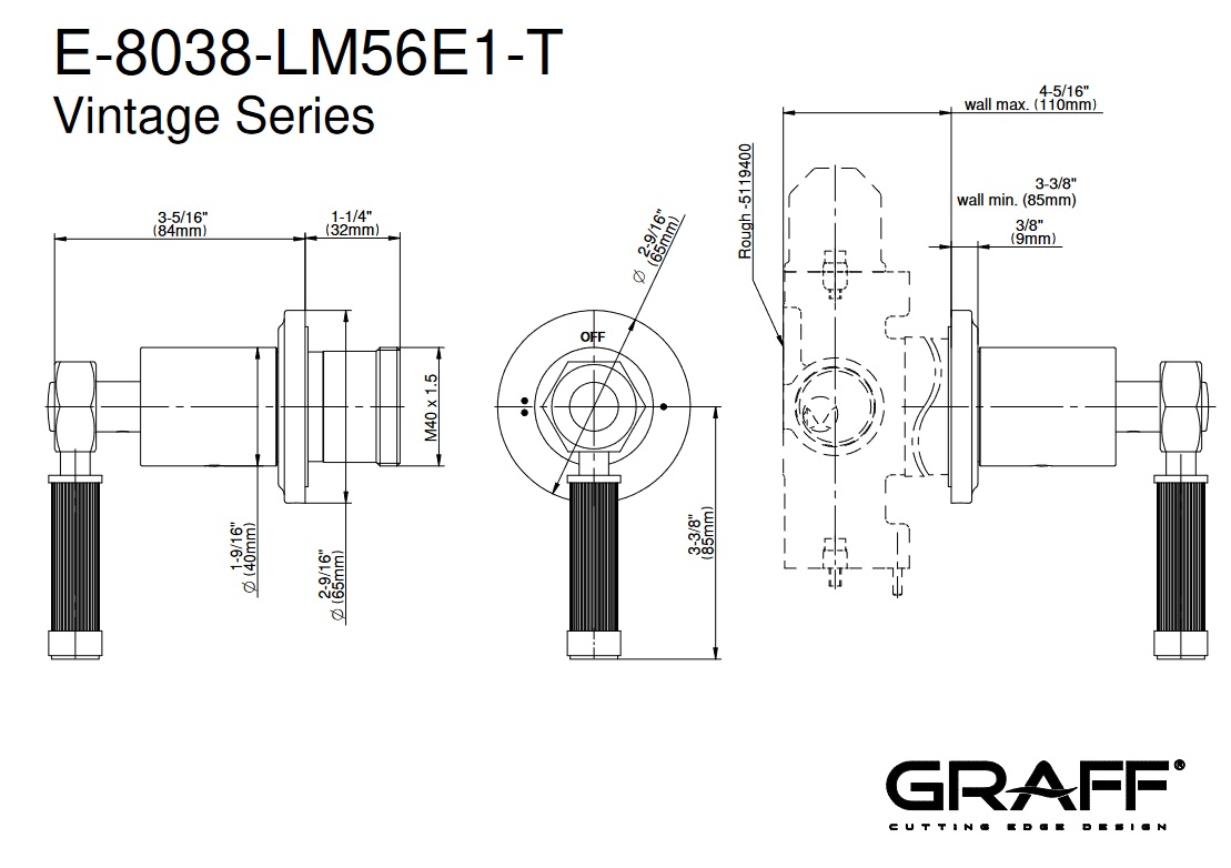 Graff Vintage Bateria natryskowa podtynkowa 2-drożna - element zewnętrzny Chrom E-8038-LM56E1-T