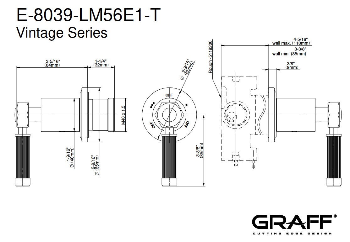 Graff Vintage Bateria natryskowa podtynkowa 3-drożna - element zewnętrzny Chrom E-8039-LM56E1-T